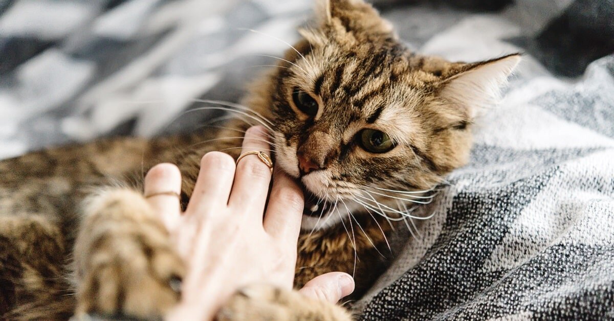 Объяснение такого поведения довольно банально. Таким образом животное показывает, что оно устало от твоего внимания. Укус не всегда является признаком враждебности. Через него кот может общаться с тобой и показывать свое отношение к тому или иному действию с твоей стороны. Иначе говоря, так коты говорят людям «нет» или «хватит».