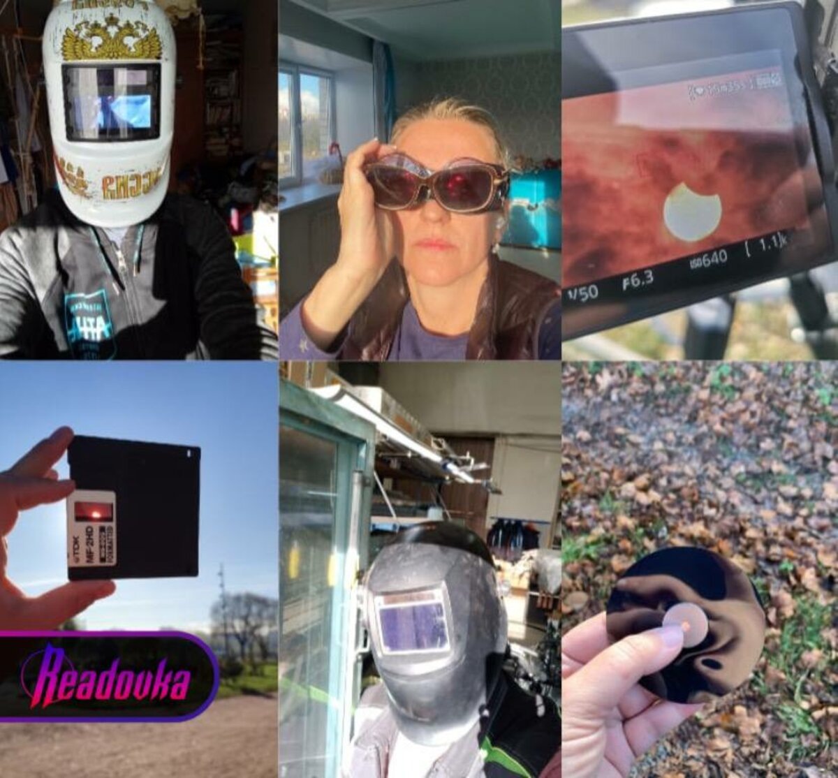 Маски для сварки и солнцезащитные очки. Россияне делятся своими оригинальными методами наблюдения за солнечным затмением. Находчивые люди оборудуют себе приборы из подручных материалов. Кто-то надевает по несколько пар солнцезащитных очков, кто-то использует диски, засвеченные пленки, фотоаппараты и даже маски для сварки. Все это обеспечивает безопасность глаз во время астрономического явления. Жители всех уголков страны публикуют фото в соцсетях, пока Луна продолжает постепенно закрывать Солнце по всей европейской части России. Ранее Readovka сообщала, что жители России наблюдают солнечное затмение.