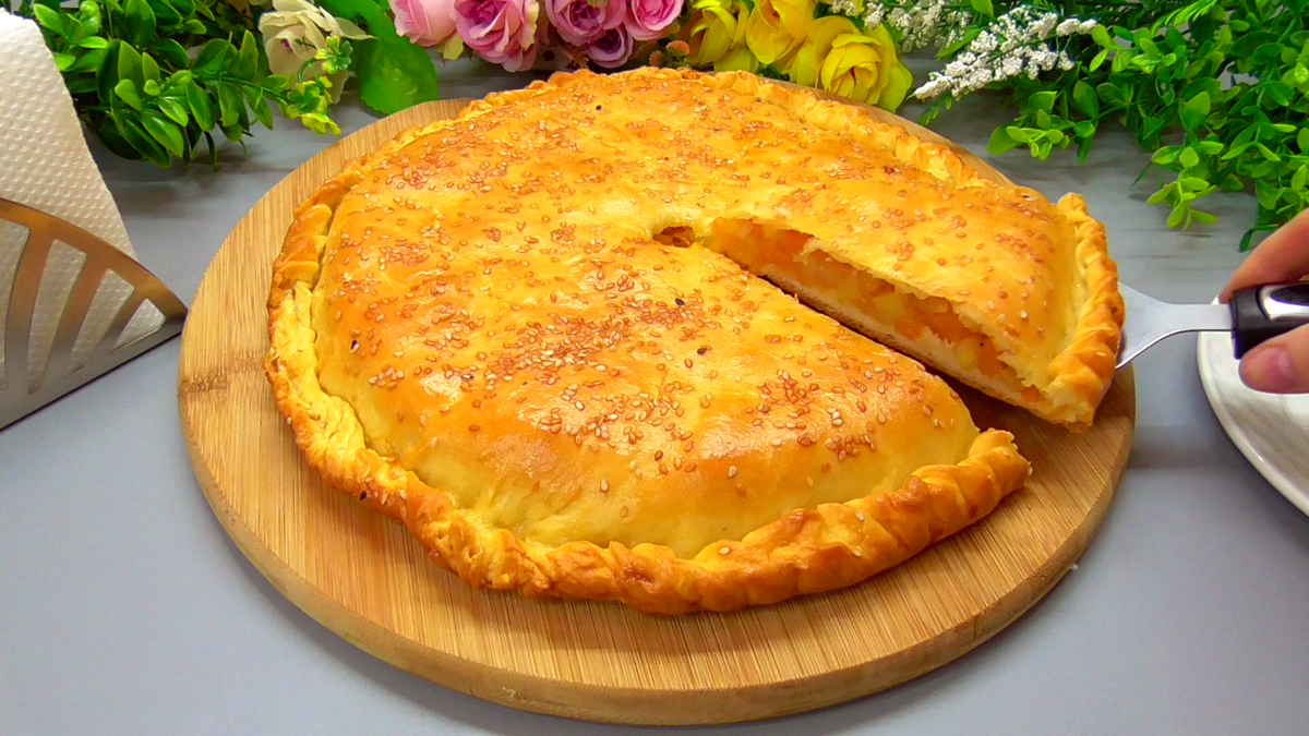Не так давно на моем канале вышел видеорецепт этого замечательного пирога с тыквой и картошкой. Сегодня публикую текстовой вариант рецепта для тех, кому удобнее сохранять в виде текста. Пирог получается очень вкусным. У меня супруг не любит тыкву, но этот пирог ел с удовольствием. Всем, кого угощала, очень понравился. Пеку его время от времени, и рецепт у себя сохранила в папке «лучшее». Очень рекомендую попробовать, если еще не пекли такой. И делается все просто. 🔹Ингредиенты 🔹 Тесто: ✔Молоко (теплое) — 150 мл. ✔Дрожжи — 5 г сухих или 15 г свежих. ✔Соль — 1/3 ч. л. ✔Сахар — 1 ч. л. ✔Масло раст. — 50 мл. ✔Мука — 250-270 г. Начинка: ✔Тыква — 340 г. ✔Картошка — 240 г. ✔Лук — 150 г. ✔Соль — по вкусу. ✔Специи — у меня немного паприки и черного перца ✔Масло сливочное — 60 г. ✔Для смазывания — 1 яйцо или желток 1 ст. л молока. ✔Для присыпки — 1 ч. л. кунжута (по желанию). 👉 Вес овощей указан в нечищеном виде. Приготовление ✅Приготовление пирога я начинаю с теста: в молоке комнатной темпе