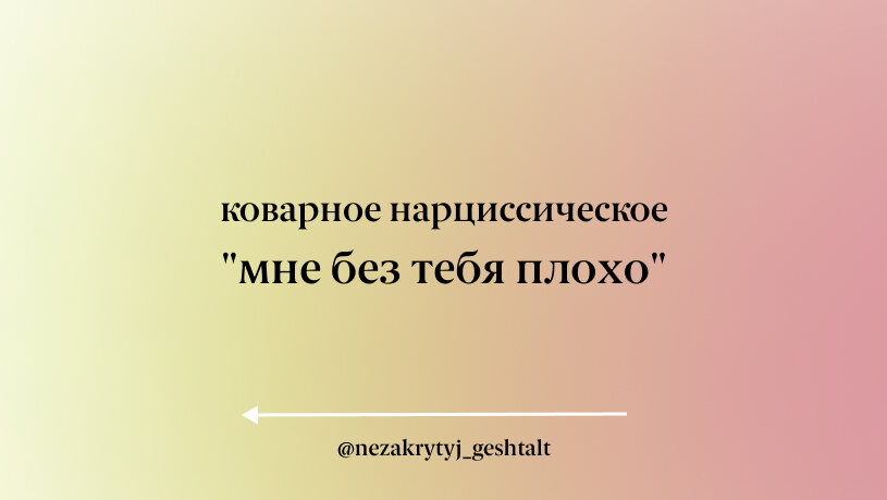 Партнер вас цинично бросил, улетел в закат, возможно, даже не сказав вам ничего определенного и, возможно, имея даже параллельные отношения, но зачем-то продолжает ненавязчиво вам писать с желанием продолжить общение, транслируя, как ему без вас плохо? Может быть раз в неделю? В две? Это очень больное место, потому что таким образом нарцисс просто продолжает вас есть. Эмоционально вы все равно по привычке реагируете на его сообщения, даже если не отвечаете. Вы эти сообщения читаете, думаете о них и думаете о человеке. Возможно вы его жалеете. Но нарцисс с вами играет и в этом месте - остается последний крючок - ваша надежда на то, что партнер изменится. Для утечки энергии этого уже достаточно. Еще больнее, если это была завуалированная утилизация вас, когда вроде как вы ушли сами, но вы просто не могли оставаться больше и терпеть к себе ужасное отношение, вам пришлось спасаться бегством или уходить из отношений с огромным минусом по всем сферам, а потом человек еще и кричит вам вдог