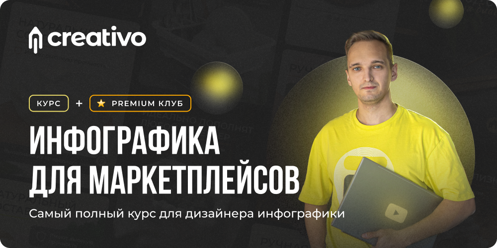 Вы создадите 20+ слайдов для карточек товаров и сформируете личное коммерческое портфолио. Кликните, чтобы узнать подробнее о курсе Посмотрите видео, какой проект вы сделаете Автор курса: Станьте дизайнером инфографики за 1-2 месяца Узнаете, как создавать качественный продукт — дизайн инфографики, как перестать терять время на поиск заказов, как углубиться в создание сервиса и получать последующие заказы от клиентов, формируя долгосрочные отношения. Кликните, чтобы узнать подробнее о курсе Бонус + Вы получите доступ в Premium клуб Creaetivo на 12 месяцев.