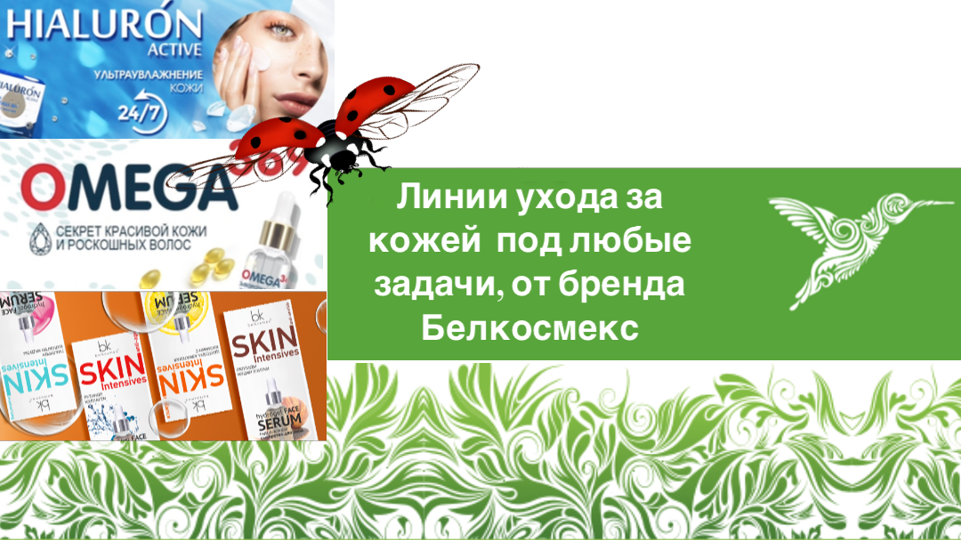 Расскажем о линиях ухода от Белкосмекс, для увлажнения, питания и точечного влияния на конкретные задачи. Hialuron Active Мощное комплексное увлажнение и омоложение кожи разных типов Эффективное сочетание 4 типов гиалуроновой кислоты, дает коже каждого возраста необходимое увлажнение пролонгированного действия. А антиоксиданты защитят кожу от преждевременного старения. Пептидные комплексы в каждом креме подобраны индивидуально для потребностей каждого возраста, вы заметите как внешний вид, контуры, и рельеф Вашей кожи улучшается день за днем. Omega 369 Экстрапитательная линия для сухой, чувствительной и атопичной кожи и поврежденных волос. Omega Plus – комплекс ценных масел подсолнечника, кукурузы, кунжута, макадамии и оливы – обеспечивает восстановление липидного барьера кожи, результативно уменьшают ее сухость и стянутость, способствует регенерации клеток, «стирая» следы усталости и стрессов и наполняя кожу красотой и сиянием. 👛Выбирайте комплексный уход из линии Omega 369 во