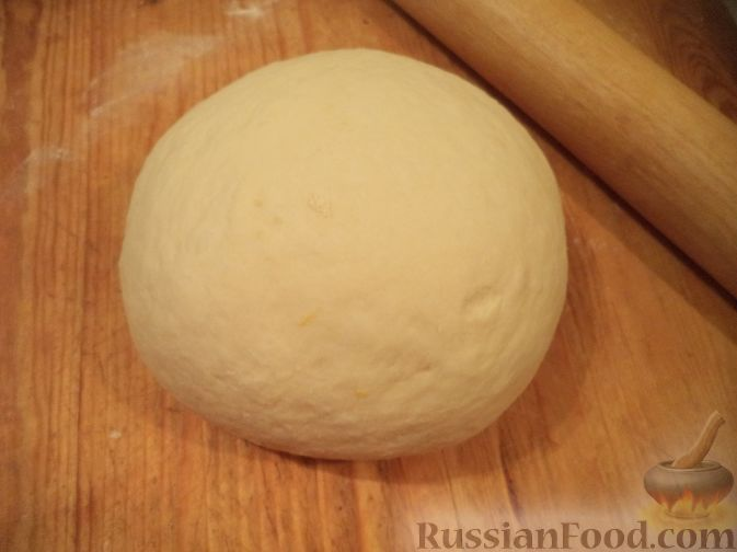 сахара и немного теплой воды или молока (около 50 мл), размешать и поставить в теплое место минут на 20. 2. Муку просеять. 3. Молоко подогреть до 30°С. 4. Половину нормы муки засыпать в миску, добавить подогретое молоко, замесить тесто, добавить сахар и дрожжи, которые уже поднялись. 5. Тесто посыпать мукой, миску накрыть чистой салфеткой и поставить в теплое место (на 50-60 минут). 6. Масло растопить на самом маленьком огне. 7. Когда тесто поднимется, добавить соль, масло (теплое около 30 градусов) и остальную муку. 8. Перемешать в