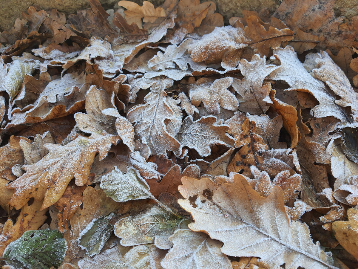 Но на пляже у озера в низинках опавшие дубовые листочки покрыты инеем. Сегодня ночью впервые была минусовая температура.