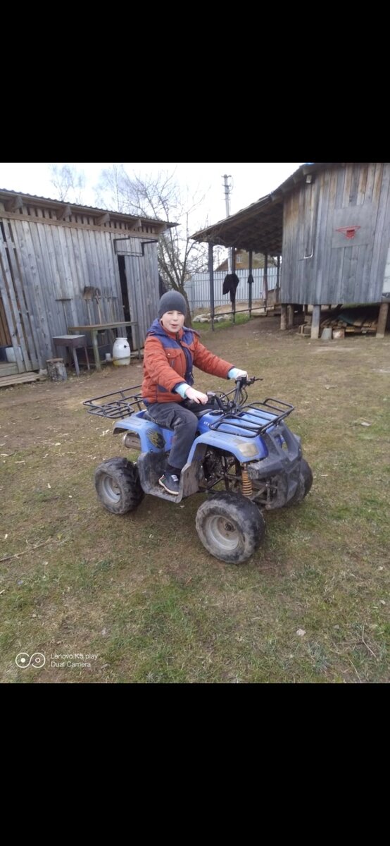 Сейчас я расскажу о своей технике Её у меня было не много, но зато очень хорошие эмоции получил Сначала на день рождения мне подарили квадрацикл на автомате, но у него состояние было плохое и мы с папой месяц или 2 востанавливали. В некоторых моментах казалась все сейчас заведётся, а нет чего-то не хвотала. Но когда завёлся я очень обрадовался и поехал кататься. Ну очень много катался и по полям и по асвальту и прыгал и гарцовал, а один раз при повороте сильно оторвал 2 колеса и очень много котался и ченил. И ещё когда мы троем с друзьями ехали на нем друг сидел на богажнике мы разогнались с горки и он упал прамо в грязь с багажником. И ещё у квадроцикла не было кик стартера заводил я только с кнопки и когда я с другом поехал прокатится до озера по полям, а ехать долеко у нас сел аккумулятор и пришлось толкать. Но потом я встретил ещё новых друзей мы с ними весело катались и очень много, но у них были мотоциклы. Я подумал и тоже захотел себе мотоцикл и мы папой довели квадрик прос