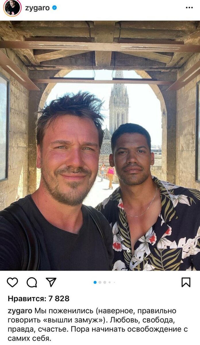 Церемония бракосочетания прошла в Португалии. Журналист-иноагент, писатель, бывший главный редактор «Дождя» (признан иноагентом) 41-летний Михаил Зыгарь сообщил, что женился в Португалии. Его избранник – также бывший журналист, актер и модель 30-летний Жан-Мишель Щербак, который участвовал в проекте «Замуж за Бузову». Оба опубликовали каминг-аут посты у себя в соцсетях. Щербак уроженец Москвы, наполовину гвинеец. На аватарке на Facebook (запрещен в РФ, принадлежит компании Meta (владеет Facebook, Instagram (запрещен в РФ), WhatsApp) признана экстремистской организацией в РФ) у него красуется украинский флаг. За плечами у Зыгаря девять лет брака с коллегой Майей Стравинской и дочь от нее. О личной жизни его супруга известно немногое. Ранее Readovka сообщала, что по данным ВЦИОМ, большинство россиян никогда не сталкивались с пропагандой ЛГБТ.