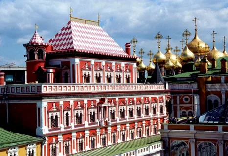 Высокого совершенства достигли московские мастера в оформлении зданий. Упомянутый Теремный дворец (кроме указанных выше лиц, его строили подмастерья Бажен Огурцов и Антип Константинов), несмотря на переделки, сохранил свой древний характер и причудливое сочетание форм русского деревянного зодчества с новейшими архитектурными приёмами каменного строительства конца XVI века. Примером внутреннего оформления может служить Престольная (Золотая) комната с её арочными дверями и окнами, резными стенами, изукрашенной печью.