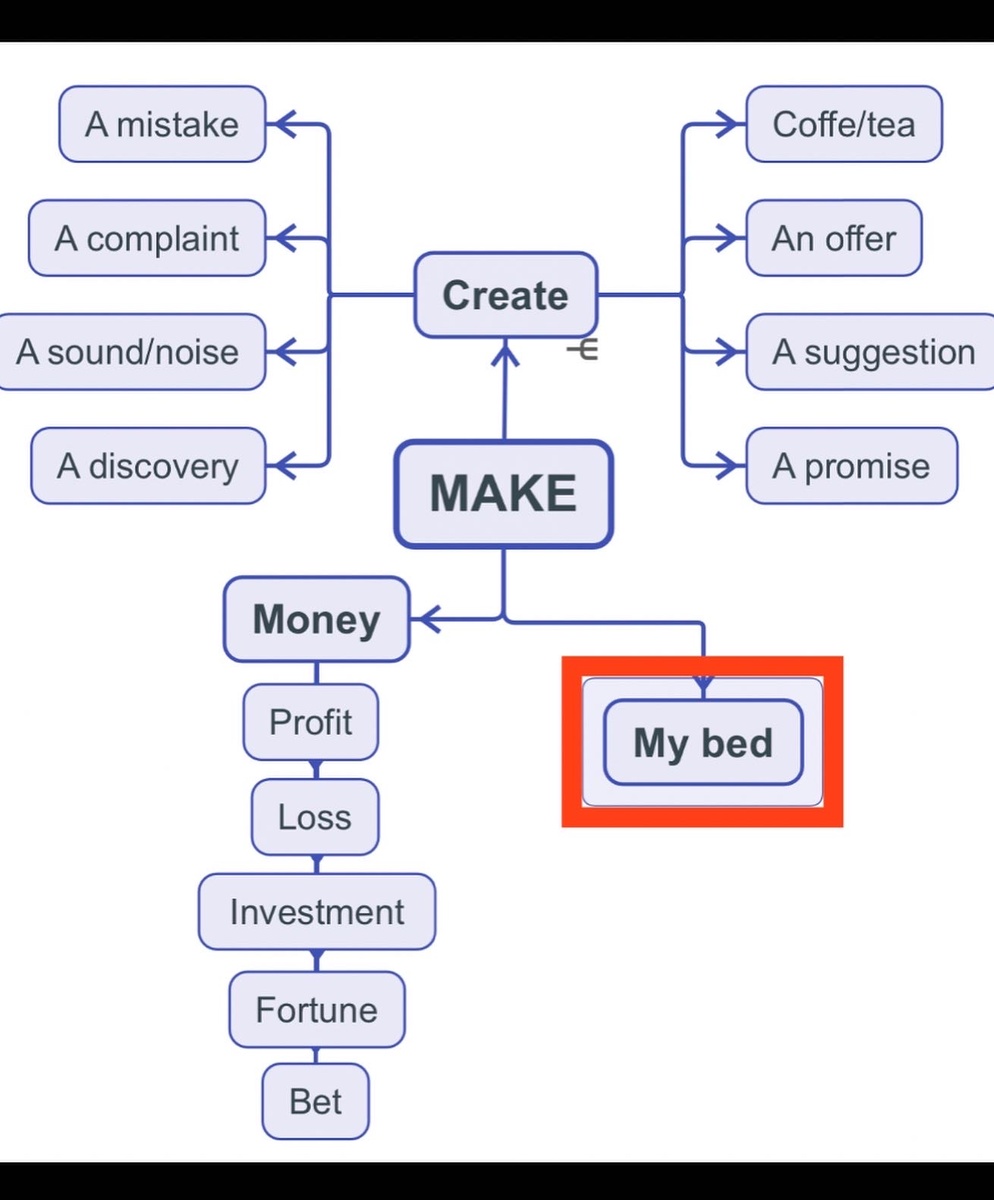 Make a mistake или Do a mistake? 🤷♀️ Были у тебя когда-либо сомнения, какой глагол использовать, make или do? Если да, то этот пост поможет тебе разрешить эту дилемму. Если нет, то в любом случае - “Practice makes perfect” 😁👌 Главное различие между make и do следующее. Make используем, когда говорим о создании чего-то, что не существовало прежде. Do используем, когда говорим о выполнении задач, которые уже существуют. Рассмотрим некоторые примеры. И да, в английском языке конечно же на 1 правило приходится 1000 и 1 исключение - они выделены красным на схеме. А для того чтобы проработать данные знания и действительно выучить эти выражения, рекомендую перейти по ссылке в Quizlet, просмотреть карточки и выполнить небольшой тест 🤗 Успехов в учении! И помните: Practice makes perfect! Повторенье - мать ученья! 😄