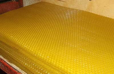 Весной на вощине, изготовленной зимой, нередко появляется серый налет, что придает ей нетоварный вид. Многие пчеловоды спрашивают, не снижает ли этот налет качество вощины? Итак, серый налет появляется на вощине не повсеместно. Если наложить лист вощины с налетом на чистый, то на нем он не появится. Следовательно, серый налет — это не плесень или грибы, развивающиеся на воске. Мыло, употребляемое при выработке вощины, также не способствует появлению налета. При рассматривании налета в бинокулярную лупу заметно, что он состоит из мелких кристаллов, которые не растворяются в воде и спирте, но легко поддаются действию толуола, бензина, скипидара, плавятся при 35...36°С. По данным В.А.Темнова — это соли непредельных жирных кислот. Налет легко удалить, достаточно прогреть вощину в сильно натопленной комнате или подержать на солнце. Но следует заметить, что налет служит признаком вылеживания вощины, она прочнее свежей, недавно выработанной. В жаркую летнюю погоду пчелы на ней отстраивают со