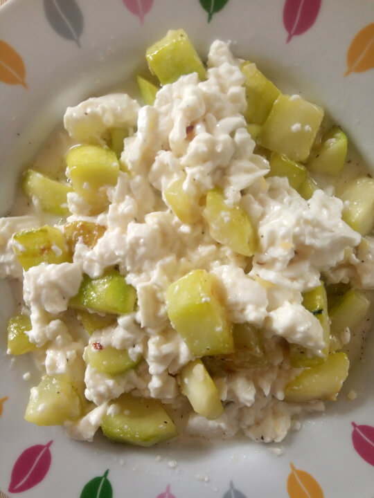 Делюсь с вами рецептом очень «быстрого» диабетического блюда. Две минуты на подготовку продуктов, и 8-10 минут на приготовление. Кабачки с творогом. ✓ 1 средний кабачок, вымытый и нарезаный кубиками