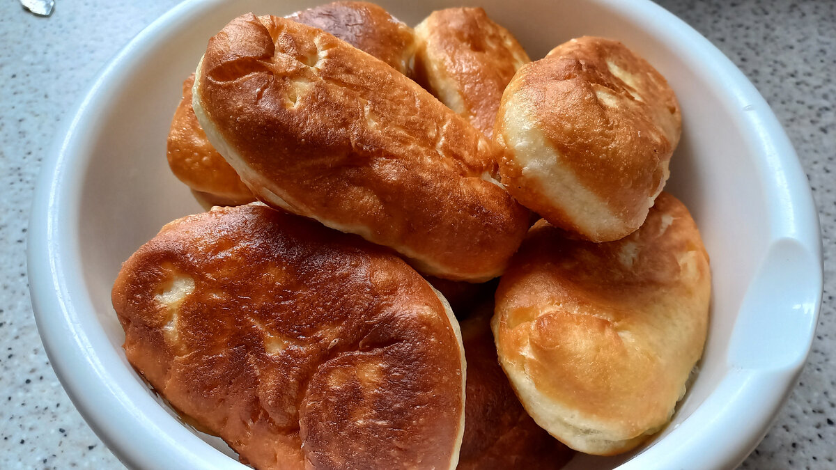 Для теста: Мука-800гр. Молоко-400мл. Дрожжи-10-11гр.(сухие быстродействующие) Сахар-2ст.л. Соль-1ч.л. Масло растительное-50мл. Яйца-2шт. Смешиваем яйца, соль, сахар, масло и вливаем тёплое молоко. В просеянную муку добавляем дрожжи и постепенно вводим её в молоко с яйцами. Замешиваем тесто. Убираем для подъёма на 1,5-2часа в тёплое место. За это время обминаем его раза два. Начинка: Картофельное пюре +колбаса+ сыр (натёртые на тёрке) (Так же можно взять любую другую начинку)) Из готового теста формируем пирожки (при этом я использую не муку, а масло) Наливаем в сковороду масло и жарим пирожки))) (кол-во масла зависит от объёма вашей сковороды) Приятного аппетита!!!