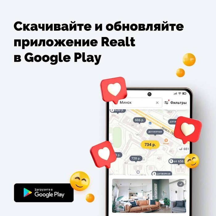 Недавно Realt обновил мобильное приложение для Android, в котором теперь стало намного удобнее и проще искать недвижимость. Рассказываем, что именно изменилось. Что мы изменили? Детальный поиск объектов с помощью фильтров: Поиск по гео: города, районы, области, районные центры, деревни, улицы, станции метро и другое: Поиск по карте: Поиск по списку объявлений: Просмотр карточки объявления: И многое другое. Чтобы увидеть изменения, включайте в настройках телефона автоматическое обновление приложения Realt — и у вас будет всегда актуальная и улучшенная версия приложения Realt. Установить мобильное приложение Realt для Android. Что изменится дальше? Realt переходит на новое мобильное приложение поэтапно. В новой версии приложения Android доступны пока не все функции, но скоро они появятся. Дальше обновления приложения поэтапно будут включать: Временно для работы в Личном кабинете, с сохраненными поисками или избранными - используйте мобильную версию сайта. Ваш Realt.
