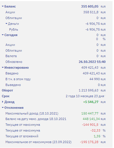 Кэш понемногу копится. В случае чего, несколько десятков тысяч смогу потратить на покупку подешевевших акций.