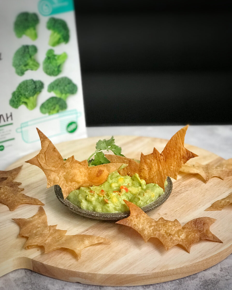 Хрустящие летучие мышки из лаваша с соусом гуакамоле из брокколи. Тематика в стиле Хэллоуина, но поверьте, что блюдо понравится детям в любой другой день. Да и взрослые оценят такие чипсы с разными соусами. Скачайте и распечатайте трафарет летучей мыши и дерзайте! Время на приготовление: 40 мин