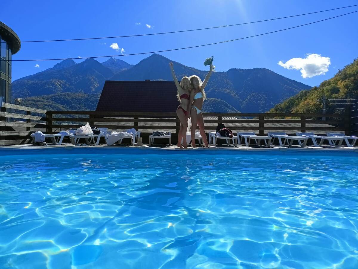 При этом не выезжая за границу Что делать, когда на дворе октябрь подходит к концу, серые дожливые дни наводят только тоску, а душа и тело требуют солнца и праздника жизни? Всё очень просто: собираемся компанией до 10 человек, покупаем билеты до Адлера и на Красной поляне в отеле Grace Olimpiya 3* бронируем виллу на двое суток. И вот вы уже в отличном месте, дышите свежим горным воздухом, принимаете солнечные ванны и купаетесь в бессейне с температурой воды 30 градусов. Круто же! А теперь прикинем, в какую сумму обойдётся этот отдых. Аренда виллы 15 тысяч рублей сутки. Вас десять человек. Итого: по 3000 рублей с каждого на проживание. Билеты на дорогу: с каждого региона цена будет разная, но в среднем закладываем по 3000 рублей на человека в один конец. То есть 6000 руб. Проезд от Адлера до Красной поляны стоит 170 рублей, ехать часа 1,5. Если желаете с комфортом и быстрее, то можно добраться на Ласточке за 290 рублей, потратив на маршрут 40 минут. Теперь не сложно посчитать, что с