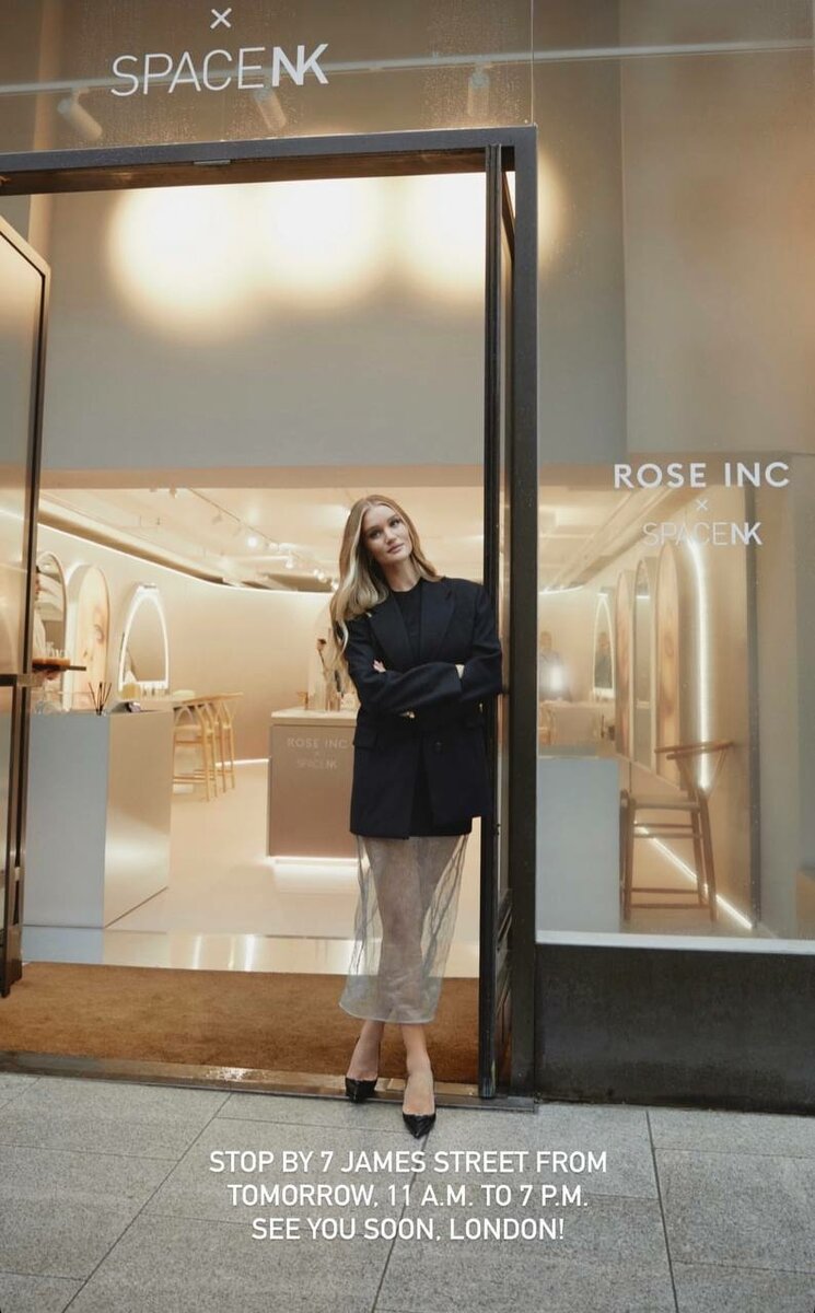 Собственный бьюти-бренд 35-летняя супермодель Рози Хантингтон-Уайтли запустила в прошлом году, но уже сейчас социальные сети марки насчитывают миллионы подписчиков, и, похоже, компания стабильно растет. Накануне состоялось официальное открытие поп-ап магазина Rose Inc в Лондоне. В течение дня Рози лично присутствовала на мероприятии и рассказывала гостям о новой линейке бренда.
