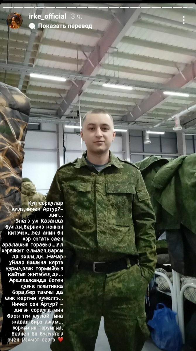 Җырчының ире Артурның мобилизациягә эләгүе турында язган идек. Артур Шабакаев турында Иркәнең тамашачысы гел сорап, кызыксынып тора икән. Җырчы социаль челтәрдәге сәхифәсендә күпләрнең соравына җавап биргән. «Ничек Артур?» – дип күп сораулар килә... Әлегә ул Казанда булды, берничә көннән китәчәк... Без аның белән һәр сәгать саен сөйләшеп торабыз. Ул һәрвакыт елмаеп, барысы да яхшы, ди... «Начар уйлар башыңа кертә күрмә, озак тормыйбыз, кайтып җитәбез», – ди... Аралашканда бөтен сүзне позитивка бора, бер тамчы да шик кертми күңелгә... Ничек соң Артур, дигән сорауга мин әлегә шулай гына җавап бирә алам. Борчылып торуыгыз, безнең белән булуыгыз өчен рәхмәт сезгә», – дип язган Иркә сторисында. Җырчыга һәм аның якыннарына – түземлек, Артурның исән-сау әйләнеп кайтуын телибез. Фото: Иркәнең социаль челтәрдәге шәхси аккаунтыннан
