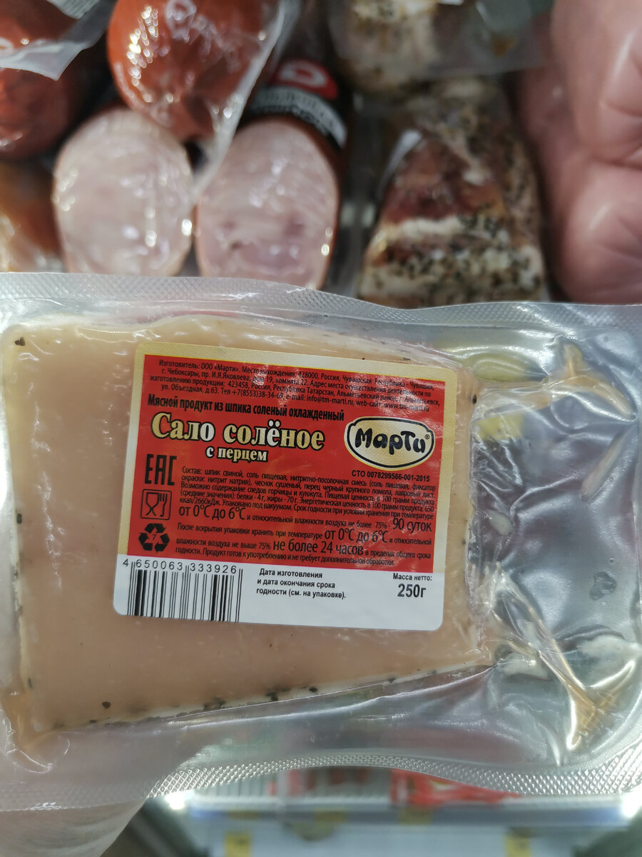 Второе, что удивило, это отзывы. Они преимущественно положительные, причём покупатели отмечают тот момент, что мясной составляющей достаточно, а это редкость для сала. И вишенкой на торте стала цена, ибо потратим мы всего 139 рублей. Некоторые рекомендуют перед подачей на стол его немного подморозить, но я никакими подобными лайфхаками не пользовалась, мне и так всё понравилось.