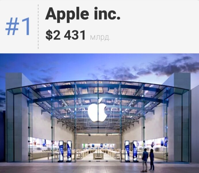 В январе 2022 года рыночная капитализация Apple превысила порог в 2.4 триллиона долларов, и сегодня компания занимает первое место как самая дорогая компания в мире.