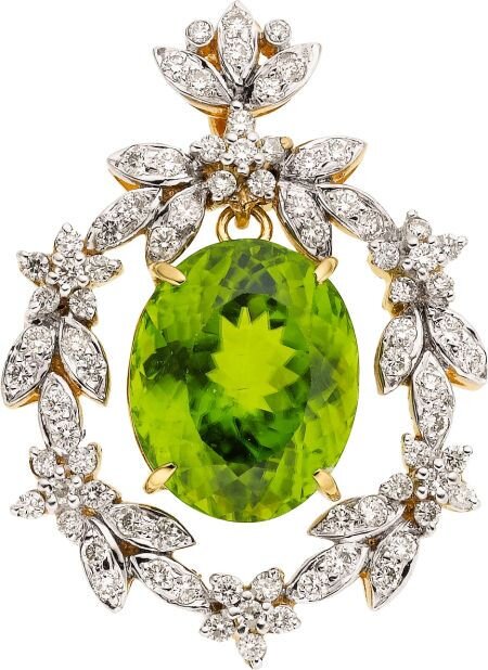 Перидот — это оливин ювелирного качества, силикатный минерал, химический состав которого включает магний и железо. Последний элемент отвечает за яркий желто-зеленый цвет камня, который древнегреческий автор Александр Полихистор сравнивал со «цветом свежего (оливкового) масла».