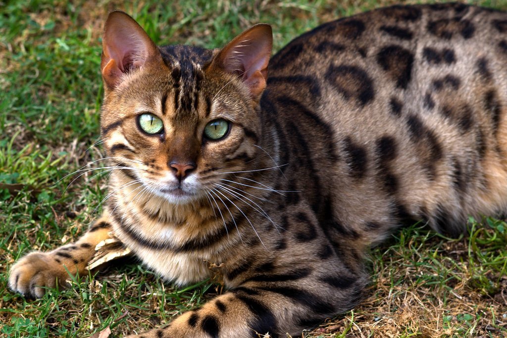 Мне хотелось бы познакомить как можно больше людей с удивительной экзотической породой кошек. Сегодня мы поговорим о роскошных, диких на вид существах, имя которым — бенгальские леопардовые кошки. Можете быть уверены, что очаровательное пятнистое создание — бенгал — пленит вас своим необыкновенным, первозданным обаянием, и вы не сможете не влюбиться в него! Небольшой экскурс в историю породы поможет разобраться, откуда появилось это чудо селекционной работы. Скрещивание пятнистой дикой кошки с домашней В 60-х годах Джейн Милл, будучи студенткой, изучая генетику в Аризоне, решила, что скрещивание пятнистой дикой кошки с домашней может привести к созданию породы, внешне похожей на маленького леопарда, но с характером ласкового домашнего мурлыки. В 1963 г. она попыталась скрестить дикого азиатского бенгальского кота (Felis bengalensis), широко распространенного в Азии, обладателя красивой пятнистой шкурки и по величине близкого к домашней кошке, с американской короткошерстной кошкой. Рез