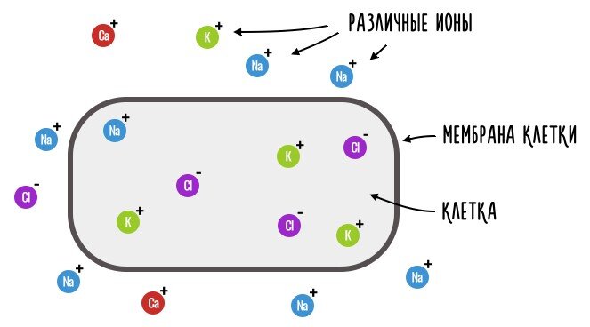 В результате такой «миграции ионов», внутри клетки становится меньше положительного заряда и больше отрицательного (выходит «плюс», а входит «минус»):
