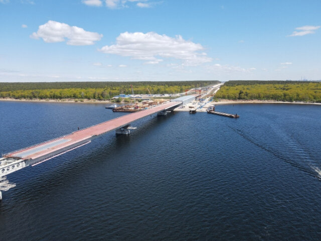 Общая техническая готовность объекта к концу года должна составить 75%. Сейчас около 1 200 человек одновременно работают на строительстве Климовского моста, задействовано 336 единиц техники и 67 плавсредств. О том, что сейчас происходит на самой масштабной стройке региона, которая идет в Шигонском районе, говорили на совещании в региональном правительстве под председательством председателя правительства Самарской области Виктора Кудряшова. Министр транспорта и автомобильных дорог региона Иван Пивкин отметил, что в настоящее время выполняются все контрольные точки графика работ текущего года: перекладка газопроводов, надвижка 14-го пролетного строения. Общая техническая готовность моста к концу года должна составить 75%. Работы стартовали в декабре 2019 года. Общая длина мостовой конструкции над Волгой составит 3,7 км. Здесь будет 26 опор, 25 пролетных строений. Протяженность всей новой дороги составит 99 км. Идет и строительство автомобильной магистрали «Обход Тольятти». Степень готовн