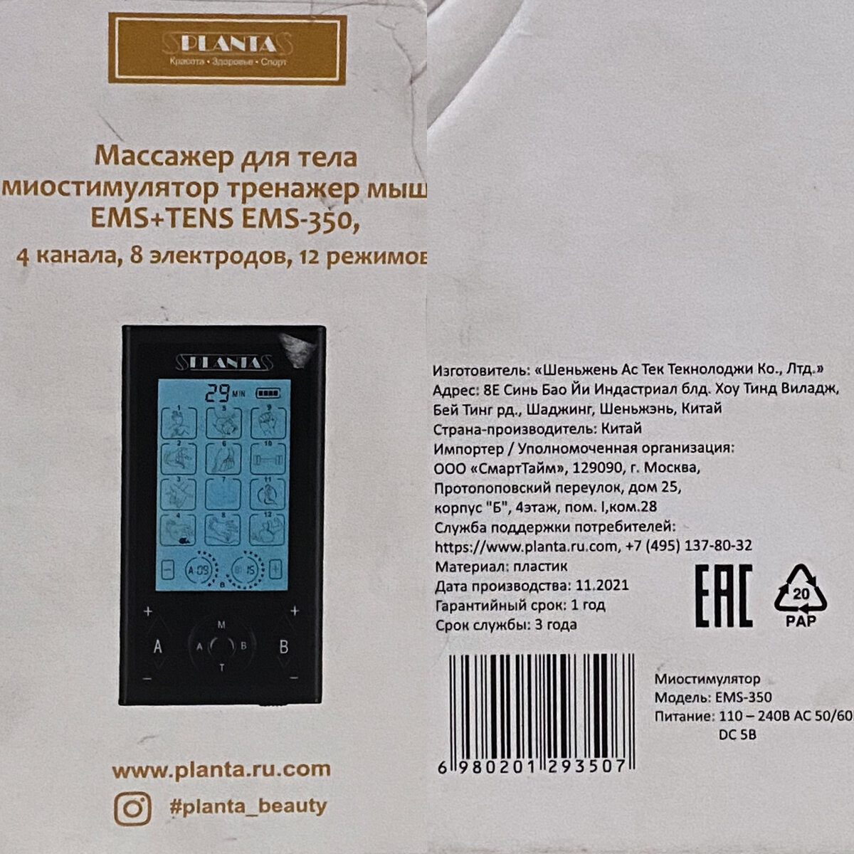 Наверно, последнее стало решающим аргументом для приобретения Массажера-миостимулятора Planta EMS+TENS PLANTA EMS-350.