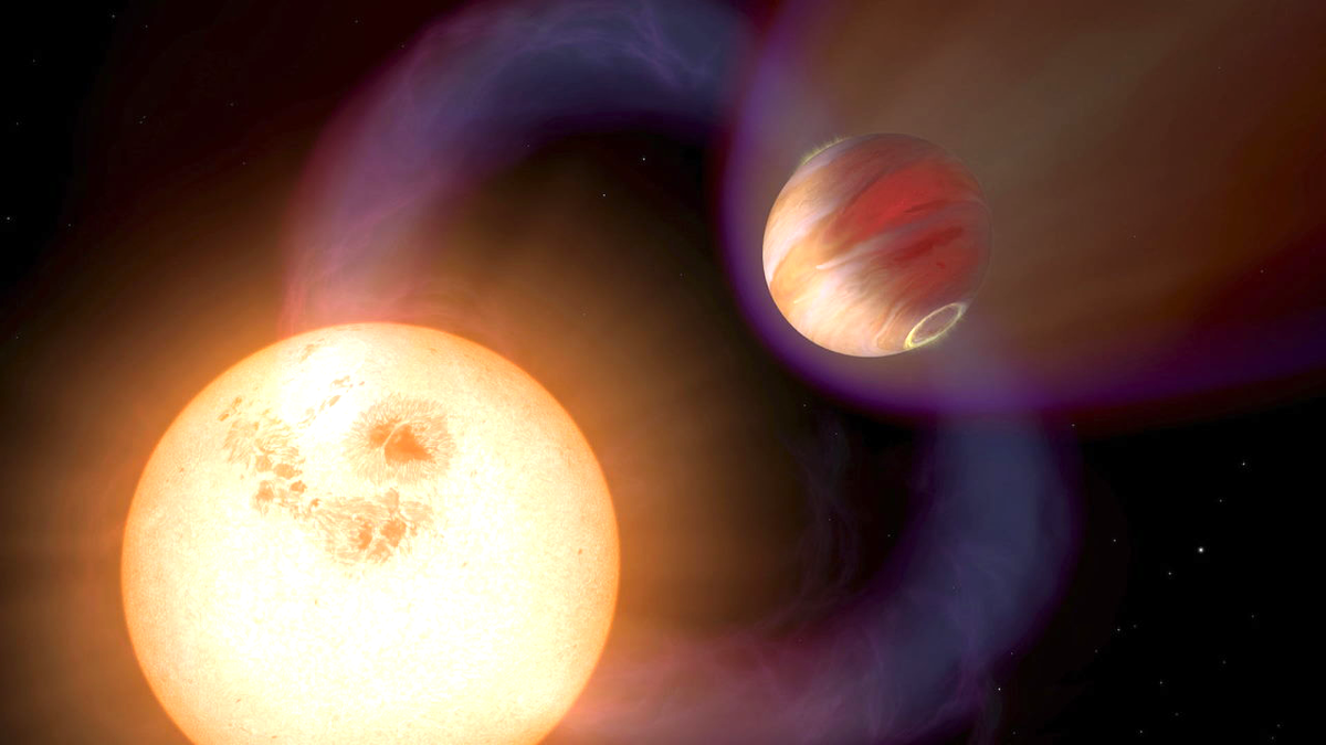 А вы знали, что магнитные поля горячих Юпитеров могут напрямую соприкасаться с магнитными полями своих звёзд и даже участвовать в формировании на них пятен и вспышек. Горячие Юпитеры, как известно, газовые планеты, похожие размерами на Юпитер или Сатурн, но находясь крайне близко к своим звёздам из-за предыдущих орбитальных отклонении в планетарной системе, по ошибке молодости в общем. В результате тесного соседства, их газовые оболочки нагреты до огромных температур, а сами они, зачастую, просто медленно теряют свою массу и атмосферу за счёт мощного звёздного ветра. Не путаем этот класс планет с "горячими Сатурнами" Эти планеты лёгкие, обладающие значительно низкой плотностью и небольшой массой. Под воздействием высокой температуры, их газовые атмосферы распухают гораздо интенсивней, чем у горячих Юпитеров. За счёт раздувания, размеры этих планет порой превышают Юпитер.