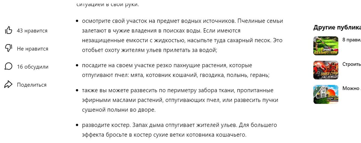 Насыпать сахар в емкость с водой на своем участке чтобы отбить охоту пчел его посещать - это сильно. Если бы не вся статья написанная в серьезном тоне - я бы решил, что это из юмористической серии, навроде вредных советов.