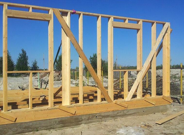 Как правильно сделать укосины? Для чего нужны укосины? Нужно ли их делать вообще? В этой статье я отвечу на эти вопросы. Казалось бы, укосина - довольно простой конструктивный элемент и должно существовать чёткое понимание, как его нужно выполнять. Однако это не так. За годы своей профессиональной деятельности я видел много проектов каркасных домов, выполненных разными проектировщиками. А также видел множество строящихся и построенных каркасов деревянных домов. И как это ни странно, но везде укосины были выполнены по-разному, а где-то их не было вообще. Почему так? Как правильно? Давайте разбираться. Для чего нужны укосины в стене каркасного дома? Укосины в каркасной стене выполняют функцию элемента, который воспринимает и сопротивляется продольной нагрузке, в частности ветровой нагрузке (то есть дом не должен качаться, перекосится или сложиться от сильного ветра). Укосины делают каркас стены жестким и устойчивым в продольном направлении (то есть в плоскости стены). Нужно ли делать уко