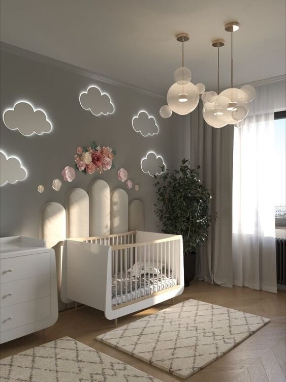 Какие светильники выбрать? И как их расположить? Свет- это важный аспект дизайна детской комнаты. От него зависит физический и эмоциональный комфорт юных членов семьи, а значит, и их гармоничное развитие. Каждый угол детской комнаты должен быть освещен — и пусть свет будет мягкий и рассеянный. 2.Предусмотрите локальный свет у кровати. Это может быть, к примеру, настольная лампа или бра. Обратите внимание на высоту подвеса над кроватью. Оптимальный вариант — 215–230 см от пола. 3.Настольную лампу на рабочем столе располагайте слева, а если ребенок левша — справа. И лучше будет, сидя за письменным столом, использовать одновременно общий и локальный свет, чтобы не напрягать зрение. 4. Точечные споты или светодиодный линейный светильник, встроенный в навесную полку – отличная замена настольной лампе. 5.Бра в диванной зоне располагайте на высоте 150 см от пола. Так вы получите мягкий рассеянный свет. Детей – вот кого можно удивить дизайном и современных осветительных приборов. И светодиодн