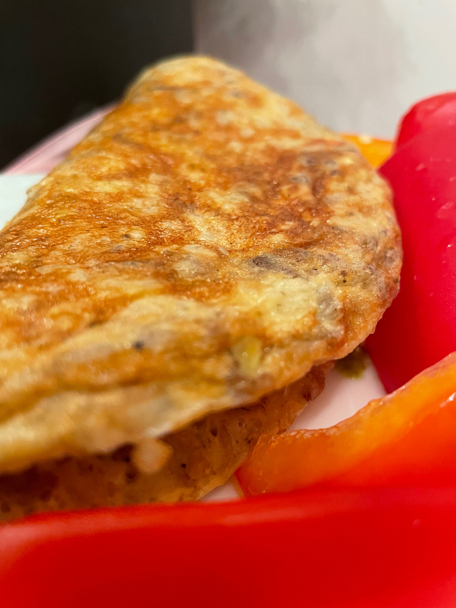 Когда-то овсяноблин был моим любимым блюдом на завтрак, обед или ужин. Правильное питание, качалка, кардио, все дела... Потом меня стало воротить от одного этого слова, но теперь я отношусь ко всем вышеназванным терминам философски, поэтому считаю, что овсяноблин - хороший вариант для "быстро приготовить" и опять же здесь есть пространство для фантазии. Ингредиенты: 2 шт - Яйца куриные 3 ст.л - Овсяные хлопья (у меня смесь 7 злаков) 3 ст.л - Жидкости (вода, молоко, кефир, сливки) Соль, специи по вкусу Процесс: Тут все проще простого: Смешать все ингредиенты, дать постоять (я смешиваю вечером, а готовлю утром) обжарить на сковороде. Внутрь горячего блина положить начинку. В этот раз у меня был творог смешанный с соусом песто. Употребить. Почувствовать пользу для организма.