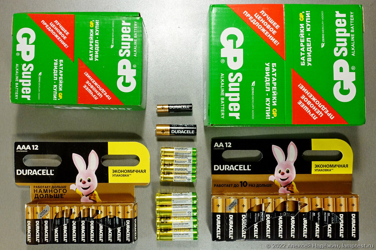 Батарейки Duracell и GP размеров AA и AAA были куплены там, протестированы, и сравнены с настоящими. Я наткнулся на эти батарейки, увидев, что продаются они по ценам существенно ниже, чем могут стоить такие оригинальные батарейки. Батарейки, очень похожие на GP Super, были куплены по 994 рубля за 96 штук (10.35 руб за батарейку). Батарейки, похожие на Duracell были куплены по 252 рубля за 13 штук (19.38 руб за батарейку). Почему-то в заказе у Duracell отображается "кабели пальчиковые". :) 13я батарейка лежала в отдельном пакетике с надписью "Это вам подарок!". Упаковка Duracell очень похожа на настояющую, но её сразу выдаёт признак, по которому можно определить подделку у многих товаров - дата производства и срок годности напечатаны типографским способом (это просто часть всего макета). На оригинальных батарейках даты впечатываются принтером на белое поле. Поддельные GP отличи