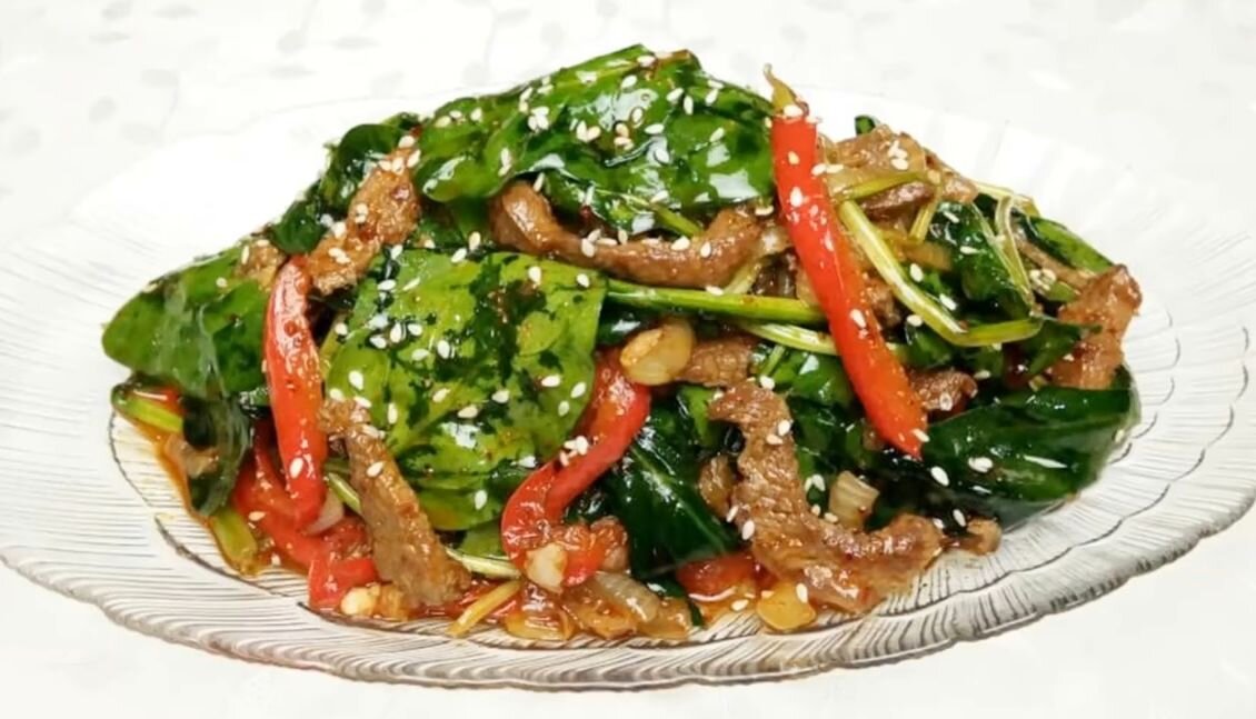 Салат из шпината с мясом по-корейски. Простой, пошаговый рецепт с фото