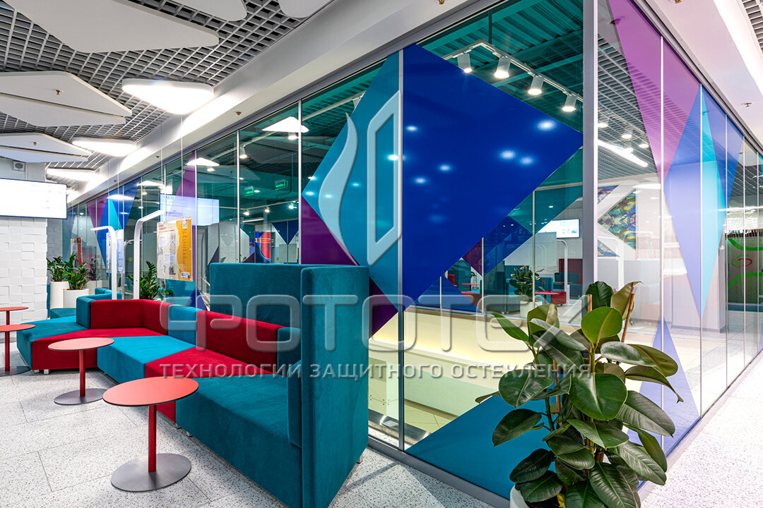 Противопожарное остекление ТРЦ «Калейдоскоп» с использованием декорированных перегородок огнестойкостью EIW 15