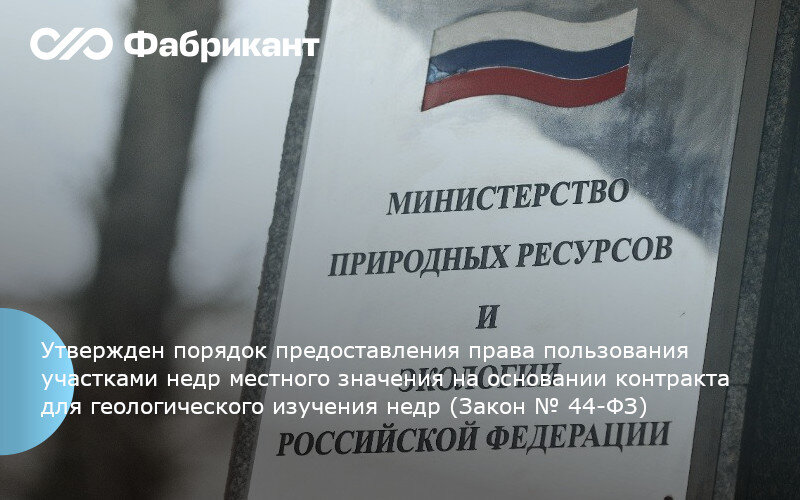 Опубликован Приказ Министерства природных ресурсов и экологии РФ и Федерального агентства по недропользованию, которым утвержден порядок предоставления права пользования участками недр местного значения на основании контракта для геологического изучения недр. Такие участки предоставляются в пользование исполнителям по госконтракту на выполнение работ по геологическому изучению недр, заключенному региональным государственным органом в порядке, предусмотренном Законом № 44-ФЗ. Документ предусматривает: Документ: Приказ Министерства природных ресурсов и экологии РФ и Федерального агентства по недропользованию от 23 августа 2022 г. № 554/07