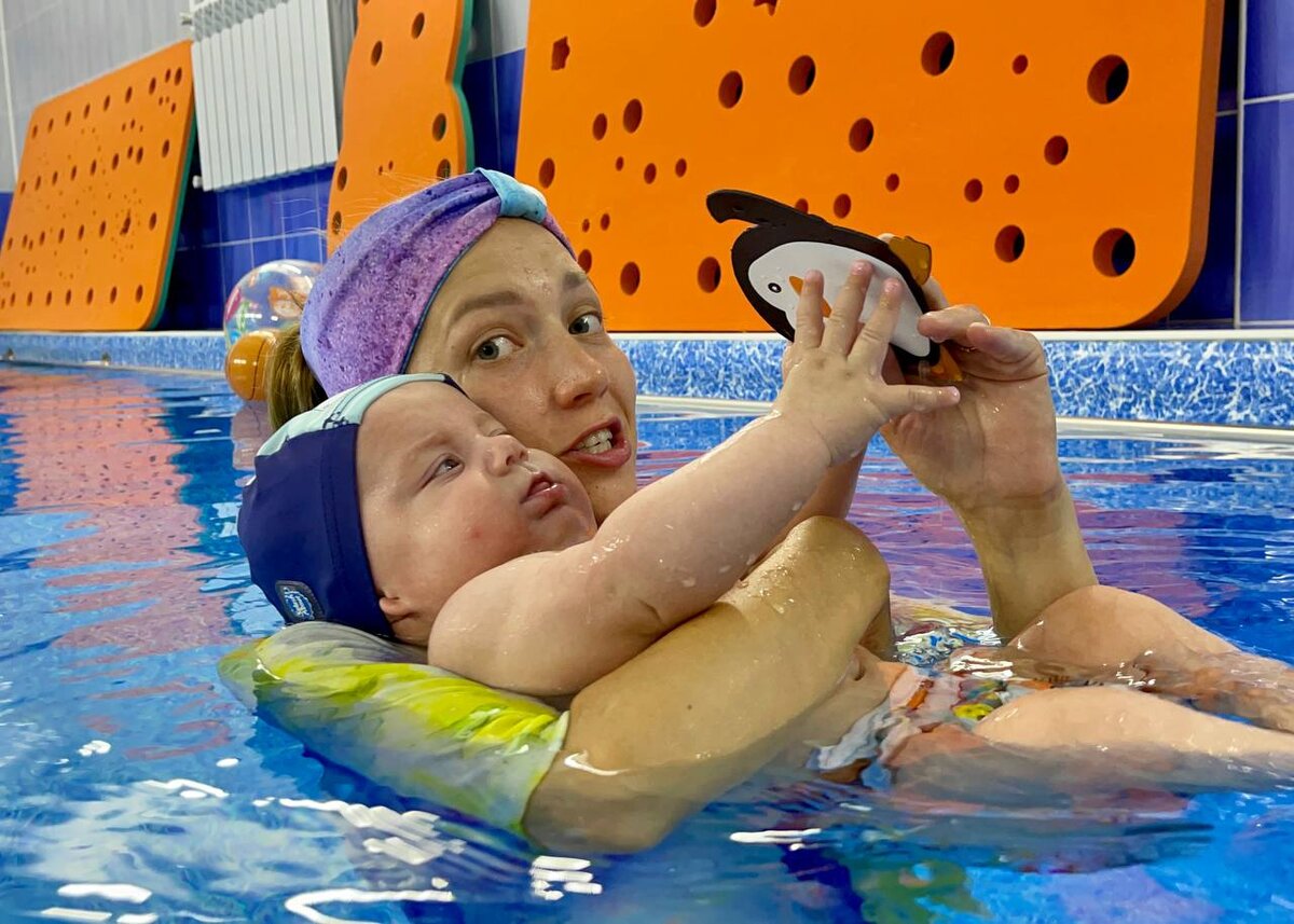 “Максим пришел на первое занятие в бассейн, когда ему было 2 месяца, тогда он еще не держал голову. На занятиях прививали любовь к воде и адаптировали малыша: долго лежали на спинке