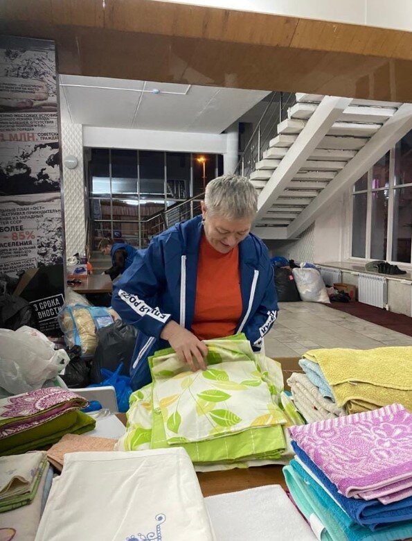 В догонку к недавней статье о моем волонтерстве. В комментариях многие меня благодарили, что я поучаствовала в волонтерском движении, что не осталась в стороне. Мне даже стало немного неудобно). Ведь я писала статью, не для того, чтобы похвастаться какая я молодец. Спасибо всем комментаторам, конечно! Но это нужно было прежде всего мне самой. А вот кто настоящие герои, так это те женщины, рядом с которыми мне посчастливилось поработать. Эти женщины старше меня по возрасту. И работали они не 3 дня по 5 часов, как я, а работают уже почти 2 недели по 11 часов! Вот им надо просто в ноги поклониться. В первый день я разбирала обувь вместе со Светланой Митрофановной. Ее все называли просто Светик. Она актриса Ейского драмтеатра и распространитель билетов. Так вот она, немолодой уже человек, с видимыми проблемами со спиной, работала со мной наравне, внаклон, перебирая обувь в коробках, сортируя, находя нужные размеры для потерпевших. На видео она нянчится с ребенком, пока родители примеряю