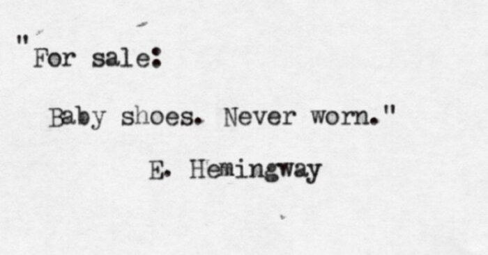 Что нет тут никакой трагедии, или это я такая бесчувственная? - спросила девушка на форуме. Речь шла о знаменитой истории про Эрнеста Хемингуэя, который якобы поспорил с друзьями на 10 долларов, что напишет самую короткую и грустную в мире историю. И написал: “Продаются детские ботиночки. Неношеные.” Написал Хемингуэй на английском, а переводчик перевел на русский, даже немного сократив рассказ из шести слов до перевода из четырех. При этом Хемингуэй почему-то выиграл, а мы так и не понимаем, где в этой истории вселенская грусть. Прикольно, что даже если вспомнить, когда жил Хемингуэй и о чем он писал, этот колокол из шести слов по нам не звонит. Ну не может же быть, чтобы друзья писателя были такими глупцами и просто подарили свои деньги другу. Да, Эрнест любил выпить, но не настолько же. Кто-то скажет, что история эта выдуманная и никто ни с кем не спорил, но, как мы знаем, все истории придуманы зачем-то, а любой англоязычный человек скажет, что это очень, очень грустная история.