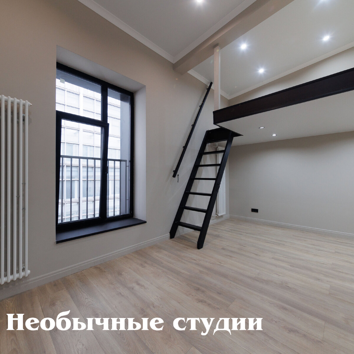 Наша компания предоставляет на выбор студии с необычной планировкой. Например, наличия двух антресолей, большое количество окон и выход на собственные террасы.