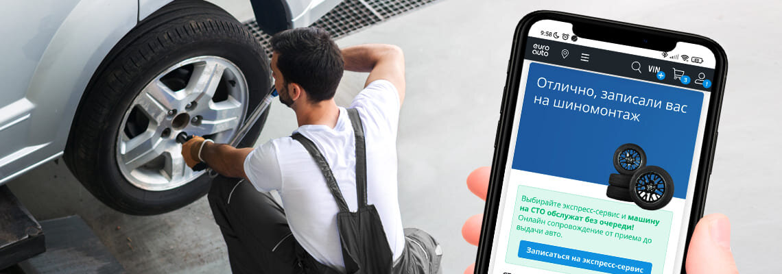 Подготовка к зиме требует времени. Нужно утеплить всю семью, морально подготовиться к платежам за отопление, а тут еще первые заморозки намекают о замене шин. Такая простая процедура, но переобуться в сезон без очереди нелегко. Как клиенты ЕвроАвто быстро записываются и проходят это испытание, опережая всех? Как быстро заменить шины Клиенты сети ЕвроАвто уже несколько лет активно пользуются услугой “Экспресс-сервис”. Это просто: запишитесь на СТО в мессенджере, а если хотите по телефону, скажите оператору: “Мне экспресс-сервис!”. Дальше всё в смартфоне: и маршрут до СТО, и отдельная парковка, и информация о готовности авто, и даже оплата онлайн. Никаких очередей, бумажек и лишних телодвижений! Экспресс-сервис любят люди, которые ценят время и уверенно пользуются мобильными сервисами. Теперь оформление на шиномонтаж есть и на сайте! Давайте посмотрим, как несколько кликов помогут быстро переобуться! Шаг 1. Записаться на шиномонтаж Зайдите в раздел сайта “Онлайн-запись на шиномонтаж”.