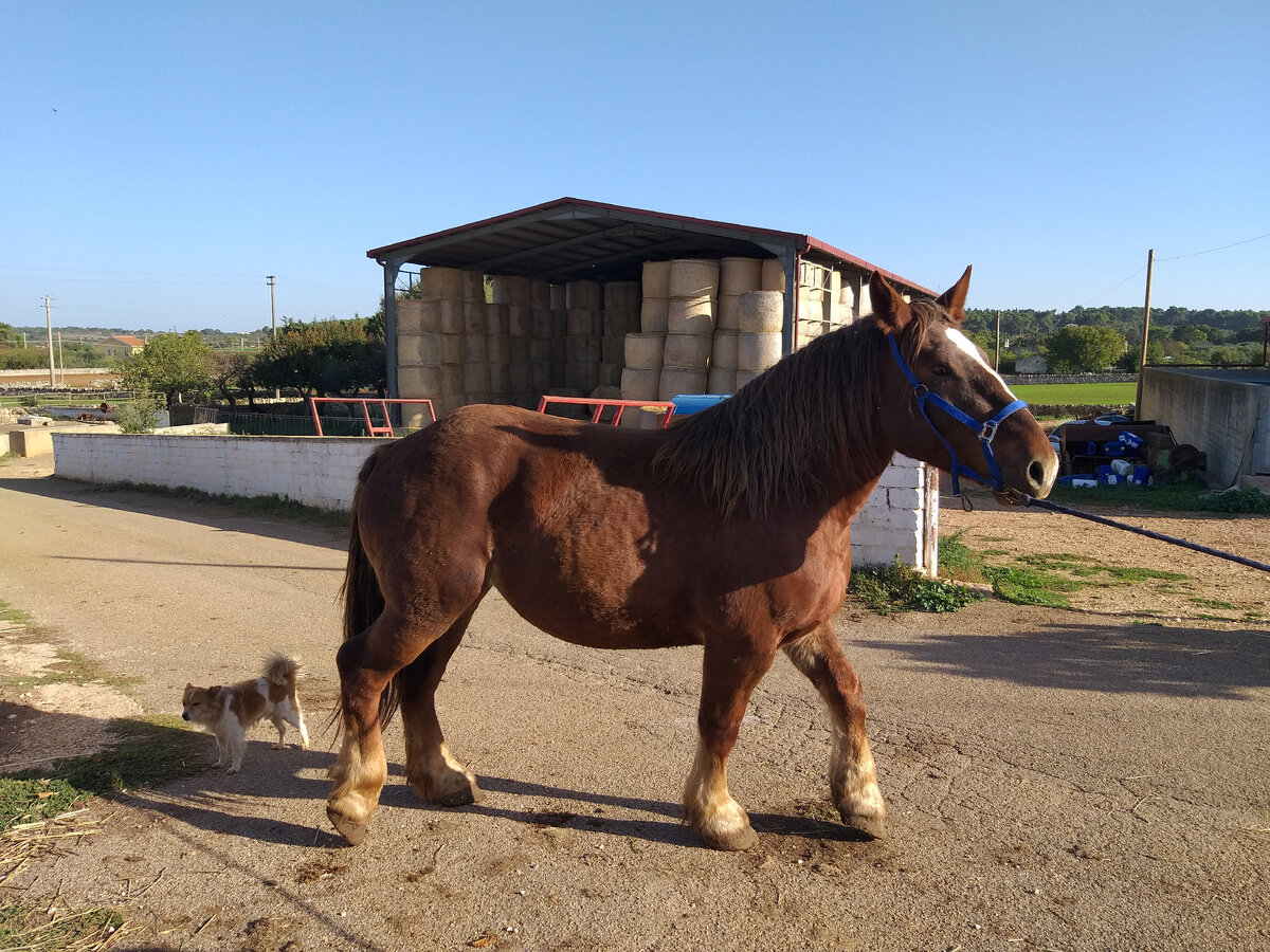 Не успела окрыть глаза, дочка кричит:" Мам, собирайся!" Собралась, и мы поехали. Время 9 утра. Каждое утро четверга мой зять работает вне дома. Ездит обучать лошадей тяжеловозов на соседнюю ферму. Обучает он их с малолетства. Сегодня в программе стояла работа с тяжеловозами в упряжке и зять предложил поехать всем вместе, так как карета расчитана на 5 человек. Таким образом мы совместили приятное с полезным: и покатались и денег заработали. Для тех , кто не знает, тяжеловозы это порода лошадей, вес которых может достигать двух тонн. Раньше их использовали для работы в полях, но так как сейчас все механизировано, то их, в основном, разводят на мясо. Представляете, сколько им надо корма. Правда, в нашем случае хозяйке тяжеловозов жалко их сдавать на мясо и она готова платить за то, чтоб приучить их к седлу, а так же к карете или упряжке, и показывать на ярмарках. Здесь, в Италии, такие ярмарки проводятся ежегодно, когда каждый хозяин показывает своего красавца-тяжеловоза. А это ка