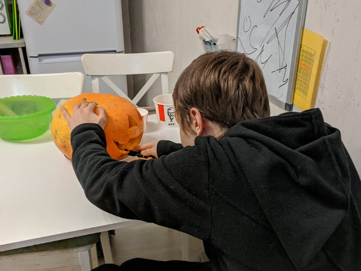 Я Хеллоуин не понимаю, не мой это праздник в наше время такого не было. Но дети любят. И чем взрослее они, тем больше украшений берут на себя. Каждый год находится шерстяной волчара, кому больше всех надо. На сей раз - Яна.