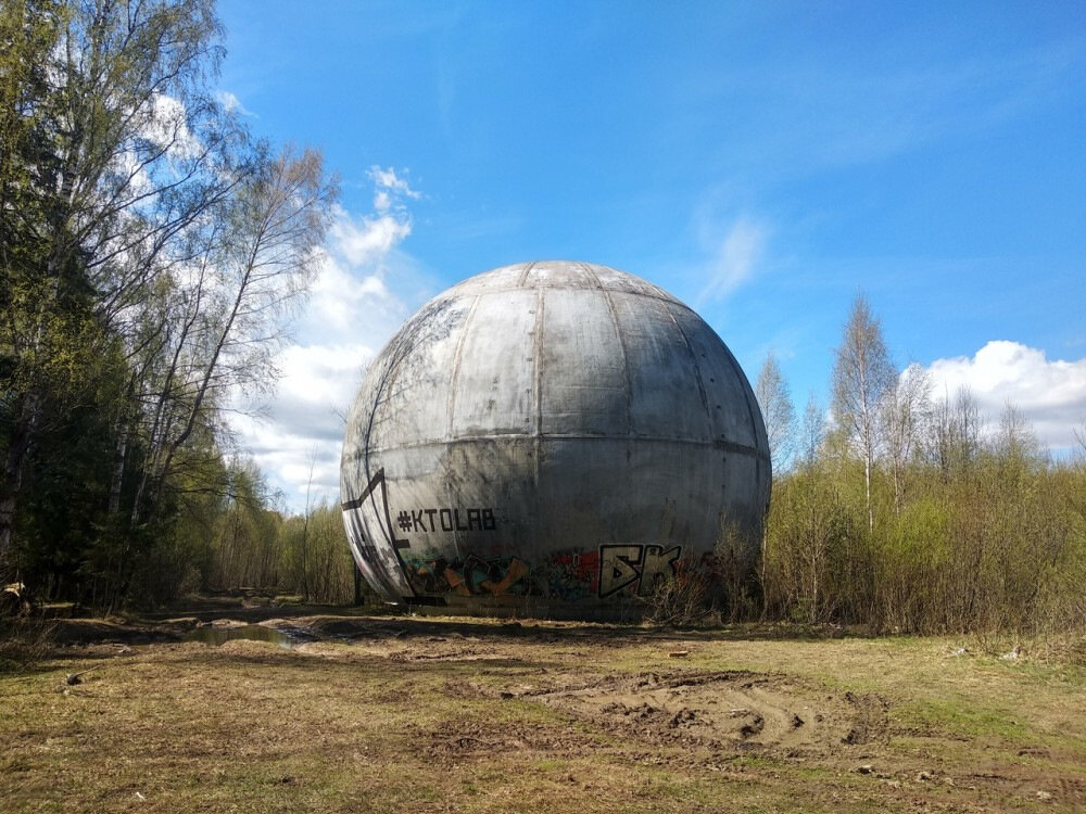 В лесу под Дубной можно найди огромный полый шар диаметром примерно 18 метров. Сделать самим это будет сложновато, но местные жители всегда с охотой расскажут, как добраться до местной «достопримечательности». С высоты птичьего полета шар можно принять за НЛО, однако в действительности это диэлектрический колпак для параболической антенны космической связи. Перевозили колпак вертолетами, однако во время транспортировки лопнул трос. Вывозить купол оказалось слишком проблематичным мероприятием. Сделан он, к слову, из стеклопластика сотовой структуры. В нем многократно усиливается любой шум и издается мощное эхо.