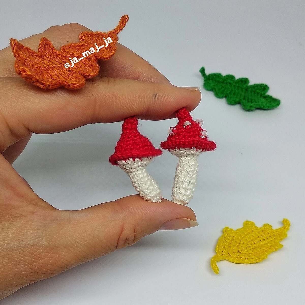 Предлагаю вам связать вот такой симпатичный МИНИМУХОМОРЧИК Мы вязали мухоморчик в прямом эфире, ссылку на запись эфира смотрите в конце этой статьи. Описание⤵ Мастер-класс МИНИМУХОМОРЧИК от @ja_maj_ja ВЯЖЕМ ШЛЯПКУ. Нитью красного цвета делаем КА. В него 1 ряд - 6 ст бн (6) 2 ряд - 3 ряд - по 1 ст бн (6) 4 ряд - (ст бн, прибавка) х 3 (9) 5 ряд - по 1 ст бн (9) 6 ряд - (2 ст бн, прибавка) х 3 (12) 7 ряд - (ст бн, прибавка) х 6 (18) 8 ряд - по 1 ст бн (18) 9 ряд - (2 ст бн, прибавка) х 6 (24) При вязании последнего столбика переходим на нить белого цвета. Красную нить выводим на лицевую сторону. Вернёмся к ней позже. ВЯЖЕМ НИЗ ШЛЯПКИ. 10 ряд - нитью белого цвета вяжем ЗА ЗАДНИЕ СТЕНКИ ПЕТЕЛЬ (ст бн, убавка) х 8 (16) 11 ряд - 8 убавок (8) вкладываем в шляпку наполнитель. Возвращаемся к красной нити. 12 ряд - оставленной нитью красного цвета вяжем ЗА ПЕРЕДНИЕ СТЕНКИ ПЕТЕЛЬ 9 ряда (2 ст бн, прибавка) х 8 (32) Нить отрезаем и прячем внутри вязания. ВЯЖЕМ НОЖКУ. 13 ряд - 18 ряд - по 1
