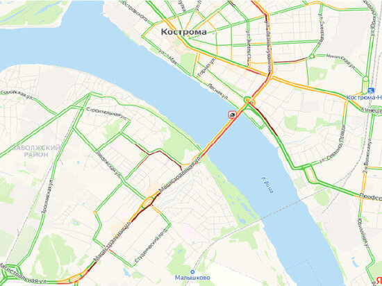 Костромские аварии: столкновение сразу 4-х машин на мосту через Волгу стало причиной грандиозной пробки
