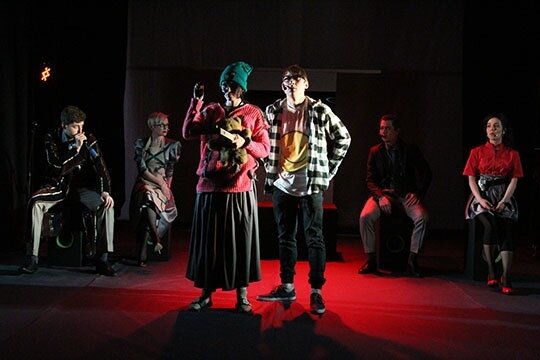 Эта постановка мне напомнила моноспектакль. Здесь герой Петра Зубарева - Саша, хотя, конечно, он давно как Мот - говорит за остальных героев. Он своеобразный переводчик с "родительского" на "человеческий". А быть может, Мот только думает, что знает, что именно говорят мама и папа? А что, если все диалоги звучат только в голове Мота?