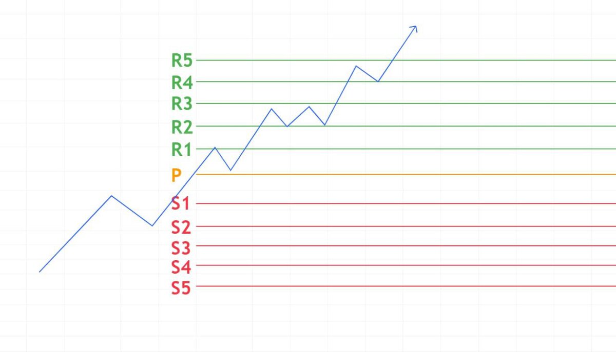 «Уровни Pivot Point и как с ними работать»💭 «Pivot» — французское слово перешедшее в английский, и означает оно буквально “поворот”. На биржевом сленге пивот обозначает точку разворота, откуда цена как будто отталкивается и начинает движение в обратном направлении. Точки пивот используются для разных торговых стратегий. Суть большинства из них заключается в предположении, что цена будет определенным образом реагировать с уровнями, определенными индикатором. 1️⃣ Классическая стратегия торговли от точек пивот предполагает, что если инструмент находится в восходящем тренде, необходимо дождаться, когда цена скорректируется до одной из точек R, после чего открывать позицию на покупку. При таких сделках тейк-профит устанавливается немного ниже, чем следующий уровень R. Стоп-лосс должен находиться на таком уровне, чтобы соотношение прибыли и возможных убытков было не ниже 1:3. Схожим образом точки пивот используются в случае необходимости открытия коротких позиций. Если цена находится в