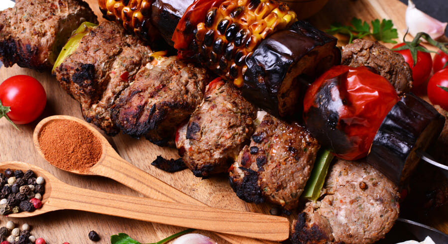 Не ограничиваться классическим мясным шашлыком, если речь идет о готовке на гриле или мангале. Попробуйте запечь на решетке кабачки, болгарский перец, шампиньоны или креветки и подать их в качестве основного блюда. Если такой возможности нет, устроить пикник можно и дома, например, с помощью электрогриля или домашней плиты.